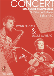 A 11h30, à l’église de Saint-Félix, concert organisé par et de Robin Fincker avec la violoniste Lucile Marsac.